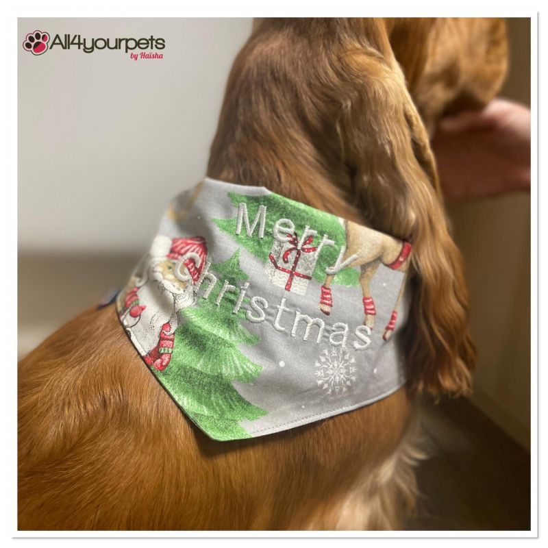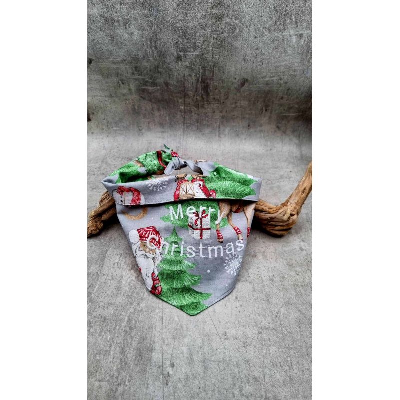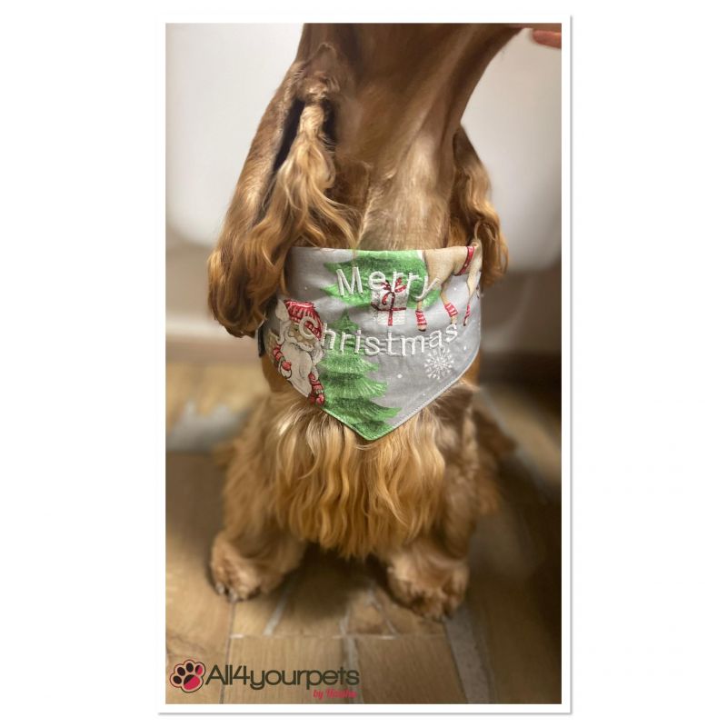 SALE -SOLDE -Bandana - Foulard -Fait main - Attache noeud - Motif "Xmas Tree" - Taille "Cocker"