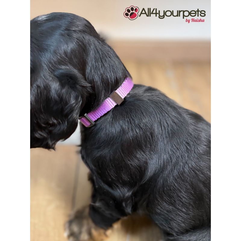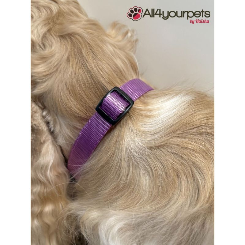 Collier parme en nylon réglable pour chien.