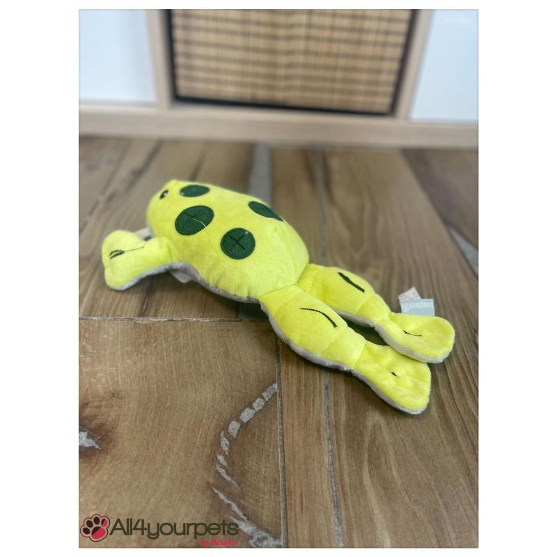 La grenouille à cache-cache garantit des heures de câlins et de plaisir de jeu. Ce jouet pour chien, fait d'une jolie peluche douce, n'est pas seulement un doudou pour chien. En fait, la grenouille à cache-cache est également un jeu de réflexion stimulant pour le chien. À l'intérieur de la peluche se trouvent différents compartiments dans lesquels vous, le propriétaire, pouvez cacher des friandises pour chien. En utilisant son nez, votre chien peut alors rechercher les délicieuses friandises. La grenouille possède douze cachettes : une dans la bouche, deux dans les pattes avant, quatre dans les pattes arrière et cinq sur le dos. La recherche de friandises pour chiens n'est pas seulement amusante pour votre chien, mais contribue également à sa stimulation mentale. En plus, votre chien apprend à utiliser son nez.